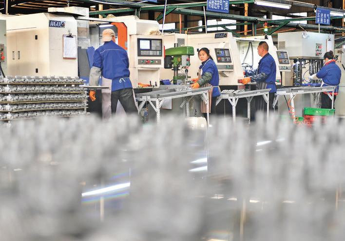耀業(yè)機械生產車間里,員工忙碌生產。