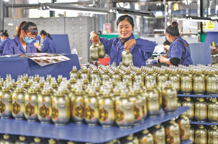 慧博玻璃員工在生產玻璃瓶。