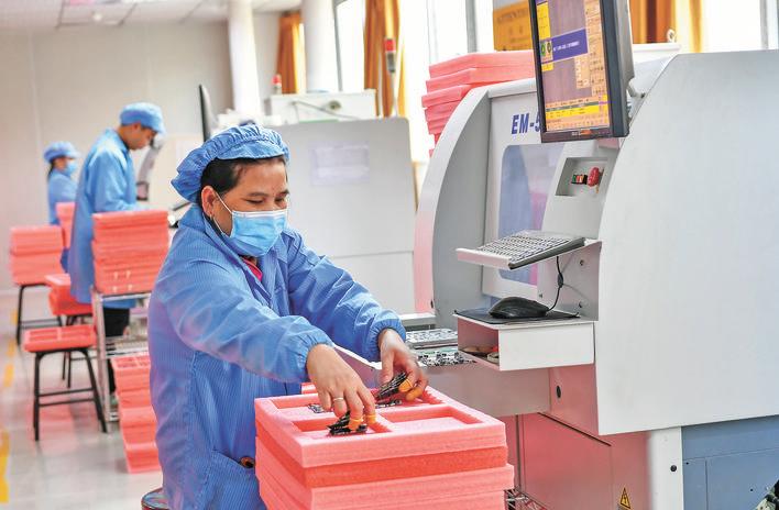 億格電子員工在生產手機主板。 連日來,記者走訪我市工業(yè)園區(qū)和重點項目建設現(xiàn)場,隨處可見熱火朝天的生產場景,處處呈現(xiàn)出奮力開好局、起好步,沖刺一季度“開門紅”的繁忙景象。開局關系全局,起勢決定走勢。我市各地認真貫徹落實市第六次黨代會、市委六屆二次全會暨市委經濟工作會、市兩會精神,以“開局就奔跑,起步就沖刺”的奮斗姿態(tài),聚焦產業(yè)發(fā)展和項目建設,持續(xù)為企業(yè)提供優(yōu)質、高效、精準服務,推動在建項目快開工、快投產、快達效,生產企業(yè)提質擴能,開足馬力生產,全力以赴沖刺一季度經濟社會發(fā)展目標,確保實現(xiàn)首季“開門紅”。(各縣(市、區(qū))融媒 游覓 陳海彬 廣安日報記者 曾誠 張啟富 文/圖) |