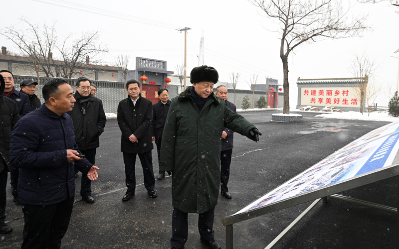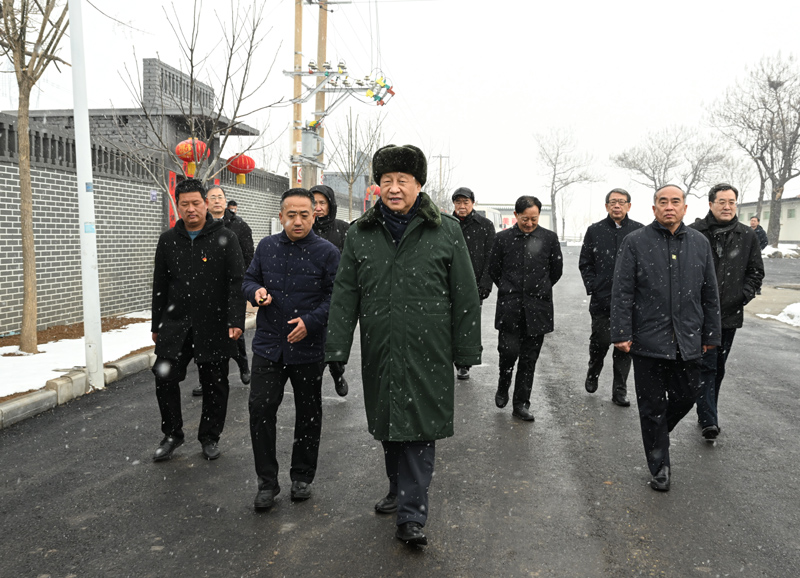 1月26日至27日,中共中央總書記、國(guó)家主席、中央軍委主席習(xí)近平來到山西,看望慰問基層干部群眾。這是26日下午,習(xí)近平冒雪在臨汾市霍州市師莊鄉(xiāng)馮南垣村考察。新華社記者 李學(xué)仁 攝