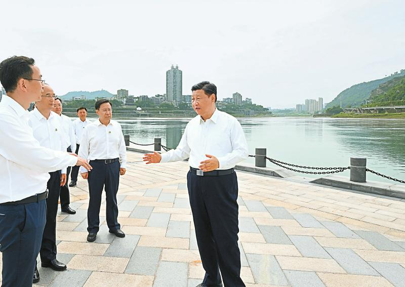 6月8日下午,習(xí)近平在宜賓市三江口考察,聽取當(dāng)?shù)赝七M(jìn)長江流域生態(tài)修復(fù)保護(hù)等情況匯報。