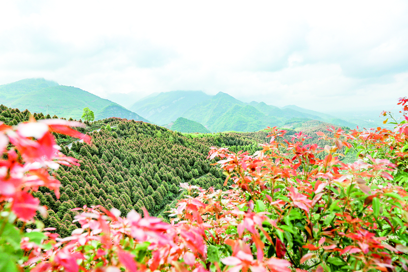 4月6日,華鎣市華龍街道柏木山村油樟產(chǎn)業(yè)園,葉紅芽嫩、生機(jī)盎然。