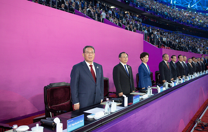 10月8日晚,第十九屆亞洲運(yùn)動(dòng)會(huì)在杭州圓滿閉幕。國(guó)務(wù)院總理李強(qiáng)出席閉幕式。新華社記者 黃敬文 攝 在過去16天里,來自亞洲45個(gè)國(guó)家和地區(qū)的1萬多名運(yùn)動(dòng)員在這里團(tuán)結(jié)交流、收獲友誼,奮勇拼搏、超越自我,累計(jì)15次打破世界紀(jì)錄、37次打破亞洲紀(jì)錄、170次打破亞運(yùn)會(huì)紀(jì)錄,共同創(chuàng)造了亞洲體育新的輝煌和榮光。中國(guó)秉持“綠色、智能、節(jié)儉、文明”辦賽理念,以一流的場(chǎng)館設(shè)施、出色的組織服務(wù),贏得了亞奧理事會(huì)大家庭和國(guó)際社會(huì)的廣泛好評(píng)。中國(guó)體育代表團(tuán)獲得201枚金牌、383枚獎(jiǎng)牌,取得亞運(yùn)會(huì)參賽歷史最好成績(jī),第11次蟬聯(lián)亞運(yùn)會(huì)金牌榜榜首。 錢塘江畔,夜幕下的杭州奧體中心體育場(chǎng)流光溢彩,宛如一朵美麗的“大蓮花”。場(chǎng)內(nèi)歡聲笑語(yǔ)、歌舞飛揚(yáng)。來自亞洲各國(guó)各地區(qū)的運(yùn)動(dòng)員相聚于此,分享屬于他們的體育文化盛宴。 歡快的樂曲聲中,李強(qiáng)同亞奧理事會(huì)代理主席辛格等步入主席臺(tái),向觀眾揮手致意。 20時(shí)整,以“最憶是杭州”為主題的閉幕式開始。全體起立,高唱中華人民共和國(guó)國(guó)歌,鮮艷的五星紅旗冉冉升起。 大屏幕上播放的開場(chǎng)短片《亞運(yùn)聚歡潮》開啟了歡歌之夜。節(jié)目《璀璨共此時(shí)》營(yíng)造出“Asia”標(biāo)識(shí)從江面涌出,立于錢塘江上空,連同潮水“自天而來”、落入現(xiàn)場(chǎng)的視效。數(shù)控草坪上,19朵巨型桂花、周圍的璀璨之花、“Asia”字樣車臺(tái)構(gòu)成蓬勃生長(zhǎng)的“亞洲花園”。街舞少年、車臺(tái)演員踏歌起舞,體育運(yùn)動(dòng)演員展現(xiàn)各項(xiàng)運(yùn)動(dòng)姿態(tài),吉祥物“江南憶”歡快躍動(dòng),點(diǎn)燃全場(chǎng)激情。 各代表團(tuán)旗幟和運(yùn)動(dòng)員代表入場(chǎng)。全場(chǎng)觀眾以熱烈的掌聲和歡呼聲,向體育健兒們表達(dá)祝賀和敬意。 短片《亞運(yùn)精彩瞬間》再現(xiàn)亞運(yùn)賽場(chǎng)上一幕幕充滿體育之美的場(chǎng)景。節(jié)目《荷桂共生輝》上演,凝結(jié)著拼搏與榮耀的“亞運(yùn)記憶之花”升騰、綻放,傳達(dá)“攀花贈(zèng)友”的雋永情誼與和合共生的美好愿景。短片《亞運(yùn)感動(dòng)瞬間》將勝利與失敗、激動(dòng)與遺憾、團(tuán)結(jié)與友愛、歡笑與淚水等動(dòng)人畫面一一呈現(xiàn)。 杭州亞運(yùn)會(huì)組委會(huì)主席、中國(guó)奧委會(huì)主席高志丹在致辭中表示,習(xí)近平主席對(duì)成功辦賽提出殷切期望和明確要求。經(jīng)過不懈努力,我們兌現(xiàn)了舉辦一屆“中國(guó)特色、亞洲風(fēng)采、精彩紛呈”亞運(yùn)盛會(huì)的莊嚴(yán)承諾。讓我們以體育促和平、促團(tuán)結(jié)、促包容,合力續(xù)寫亞洲命運(yùn)共同體的嶄新篇章。 亞奧理事會(huì)代理主席辛格在致辭中說,本屆亞運(yùn)會(huì)精彩絕倫、令人難忘,取得了空前成功。感謝中國(guó)政府、中國(guó)奧委會(huì)、杭州市民與杭州亞組委的精心籌備。辛格宣布杭州第十九屆亞運(yùn)會(huì)閉幕,并發(fā)出邀請(qǐng),三年后相聚愛知·名古屋第二十屆亞運(yùn)會(huì)。 伴著亞奧理事會(huì)會(huì)歌,亞奧理事會(huì)會(huì)旗緩緩降下。 隨后舉行交接儀式。杭州亞運(yùn)會(huì)組委會(huì)副主席兼秘書長(zhǎng)、杭州市市長(zhǎng)姚高員將第一屆亞運(yùn)會(huì)火炬和會(huì)旗、亞奧理事會(huì)會(huì)旗交給亞奧理事會(huì)代理主席辛格。辛格將第一屆亞運(yùn)會(huì)火炬和會(huì)旗、亞奧理事會(huì)會(huì)旗交給下屆亞運(yùn)會(huì)舉辦城市日本愛知縣知事大村秀章和名古屋市副市長(zhǎng)中田英雄。 升日本國(guó)旗、奏日本國(guó)歌后,愛知縣和名古屋市呈現(xiàn)了8分鐘的精彩文藝表演。 江南好,情久長(zhǎng)。短片《最憶是杭州》以“告別”為主線,以外國(guó)游客、亞運(yùn)志愿者、杭州市民為主要人物,展現(xiàn)他們對(duì)這段時(shí)光依依不舍,揮手道別、互致祝福。 21時(shí)16分,開幕式上出現(xiàn)的“數(shù)字火炬手”跑入現(xiàn)場(chǎng)。亞運(yùn)會(huì)賽會(huì)志愿者“小青荷”代表、各行各業(yè)亞運(yùn)會(huì)參與者代表走上前來,與“數(shù)字火炬手”一起見證熄滅主火炬。隨著火焰緩緩熄滅,“數(shù)字火炬手”邁向遠(yuǎn)方,幻化為漫天星辰、灑向亞洲、照亮萬家…… 璀璨燈光點(diǎn)亮夜空。體現(xiàn)杭州、寧波、溫州、湖州、紹興、金華6個(gè)辦賽城市特色元素的花車在場(chǎng)內(nèi)巡游。歌聲、掌聲、歡呼聲響徹云霄,全場(chǎng)氣氛一次次達(dá)到高潮。歡樂的海洋中,人們心心共相融,期待再相見。 出席閉幕式的國(guó)際貴賓有:烏茲別克斯坦總理阿里波夫、東帝汶副總理黎發(fā)芳。 吳政隆、諶貽琴出席閉幕式。 亞奧理事會(huì)官員等出席閉幕式。 |