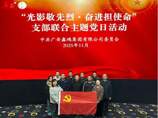 廣安鑫鴻集團(tuán)黨委開展“光影敬先烈·奮進(jìn)擔(dān)使命”支部聯(lián)合主題黨日活動(dòng)為深入學(xué)習(xí)貫徹習(xí)近平新時(shí)代中國特色社會(huì)主義思想,弘揚(yáng)偉大抗美援朝精神和偉大抗戰(zhàn)精神,進(jìn)一步增強(qiáng)黨組織的凝聚力和戰(zhàn)斗力,近日,鑫鴻集團(tuán)黨委組織各支部全體黨員聯(lián)合開展“光影敬先烈·奮進(jìn)擔(dān)使命”主題黨日活動(dòng)。